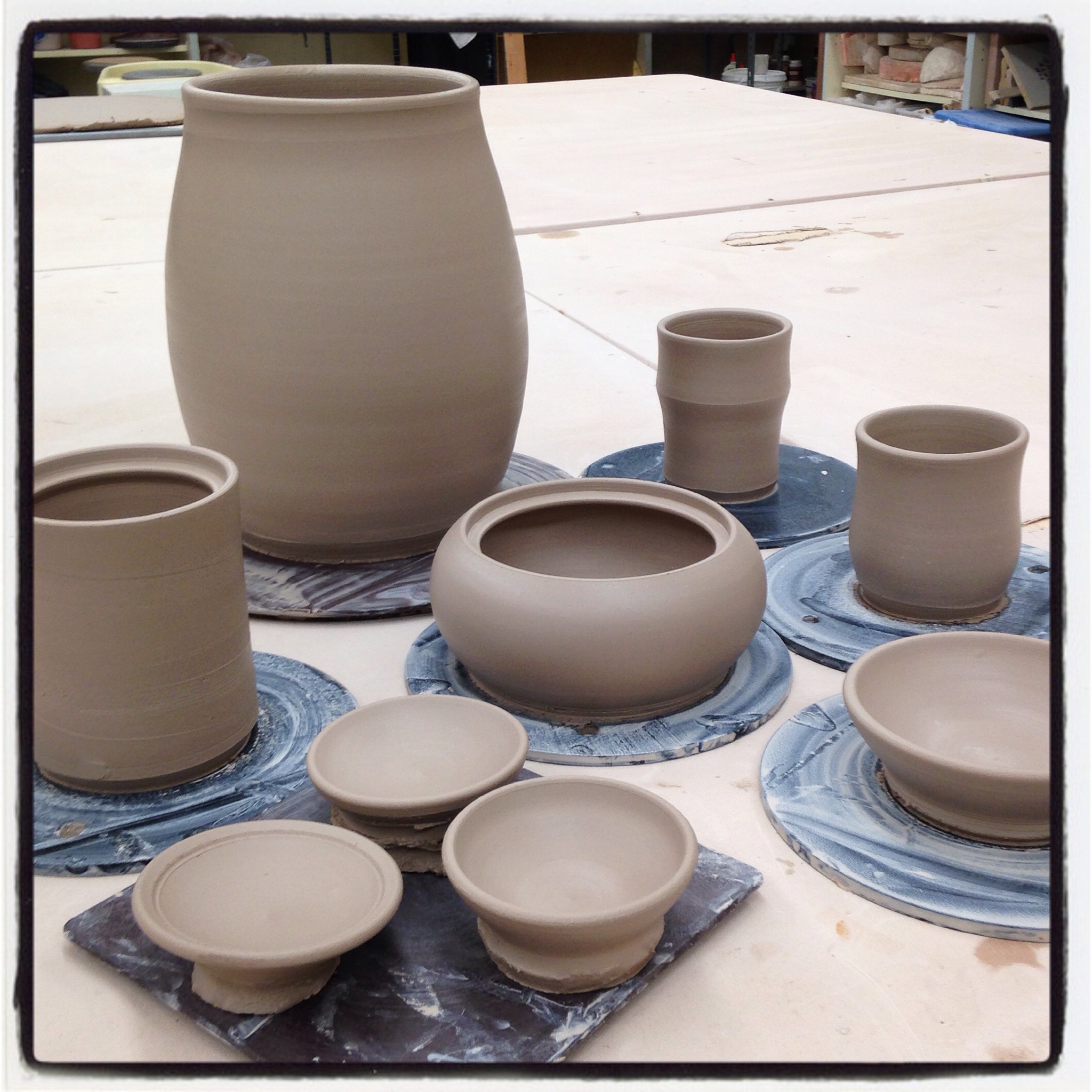 My advanced students are all working on different projects, so I did a little “warm up” throwing to get ready for their class. We will be working on handles, lids and larger forms for the next few weeks.