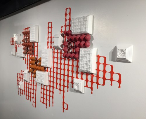 Ceramic objects, construction barrier, egg cartons. Cone 04 oxidation.